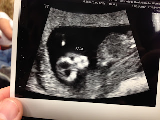 We had our baby appointment last week. Goodness, it seems so long ago. I love ultrasound appointments and being able to see our little one. And he/she is big enough to see all kinds of details. We counted all the fingers and toes :] That was awesome. Measured everything. Tech says baby peaches is looking good. So that's comforting. So far I haven't done anything wrong. We went through with our crazy idea of not finding out then. The tech was so good about it and joked with us and kept telling us to look away just in case. I'm glad. I was afraid we'd see something. And Chris has been such a good sport. He hates, HATES this idea, but he's been good about it. I said just give me this one baby and this one fun idea, and then he can do whatever he wants for the rest of them. But, I resisted the urge to peek in the envelope, and handed it off asap, and so far so good. Take that all you nay-sayers ! We've lasted a week without any mess ups. Chris keeps saying Angel is giving it away, but I'm just not paying attention enough. So two more weeks. Yay for baby shower ! Ah, I've gotta register ! Arg. I'm excited though. Everyone planning it and all their little comments and their excitement makes me so excited. And so thankful for everyone helping. I can't wait to see their ideas and their work and everything. It's going to be great. Aleshia keeps saying I hope you like it, or it's what you want and I just keep saying as long as I know it's a boy or girl when I walk in, and as long as no one ruins it before Jan 5th, everything will be perfect. So... 2 weeks. We got this.